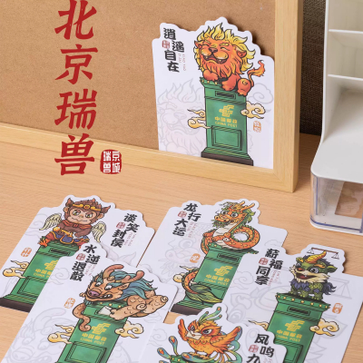 中轴线北京瑞兽寻味北京明信片打卡贴纸DIY送旅游朋友生日礼物