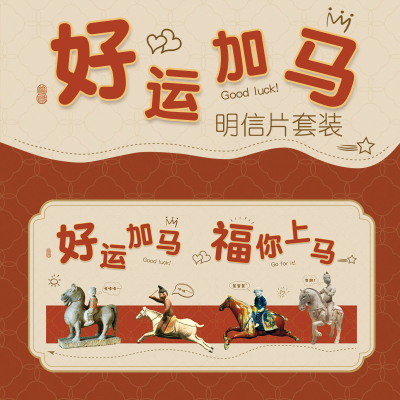 好运加马福你上马明信片国潮生活文物祝福贴纸DIY生日礼物送朋友